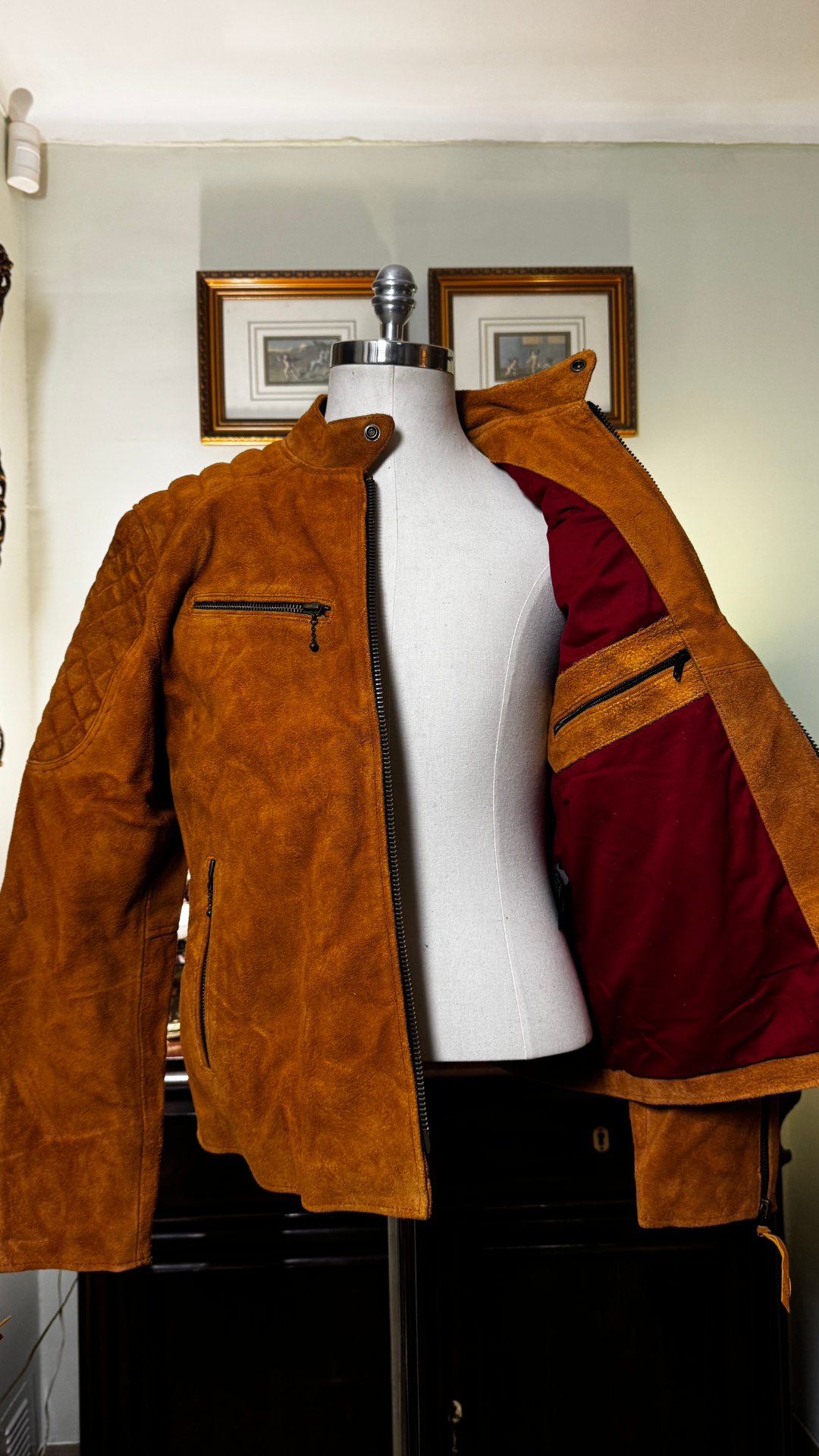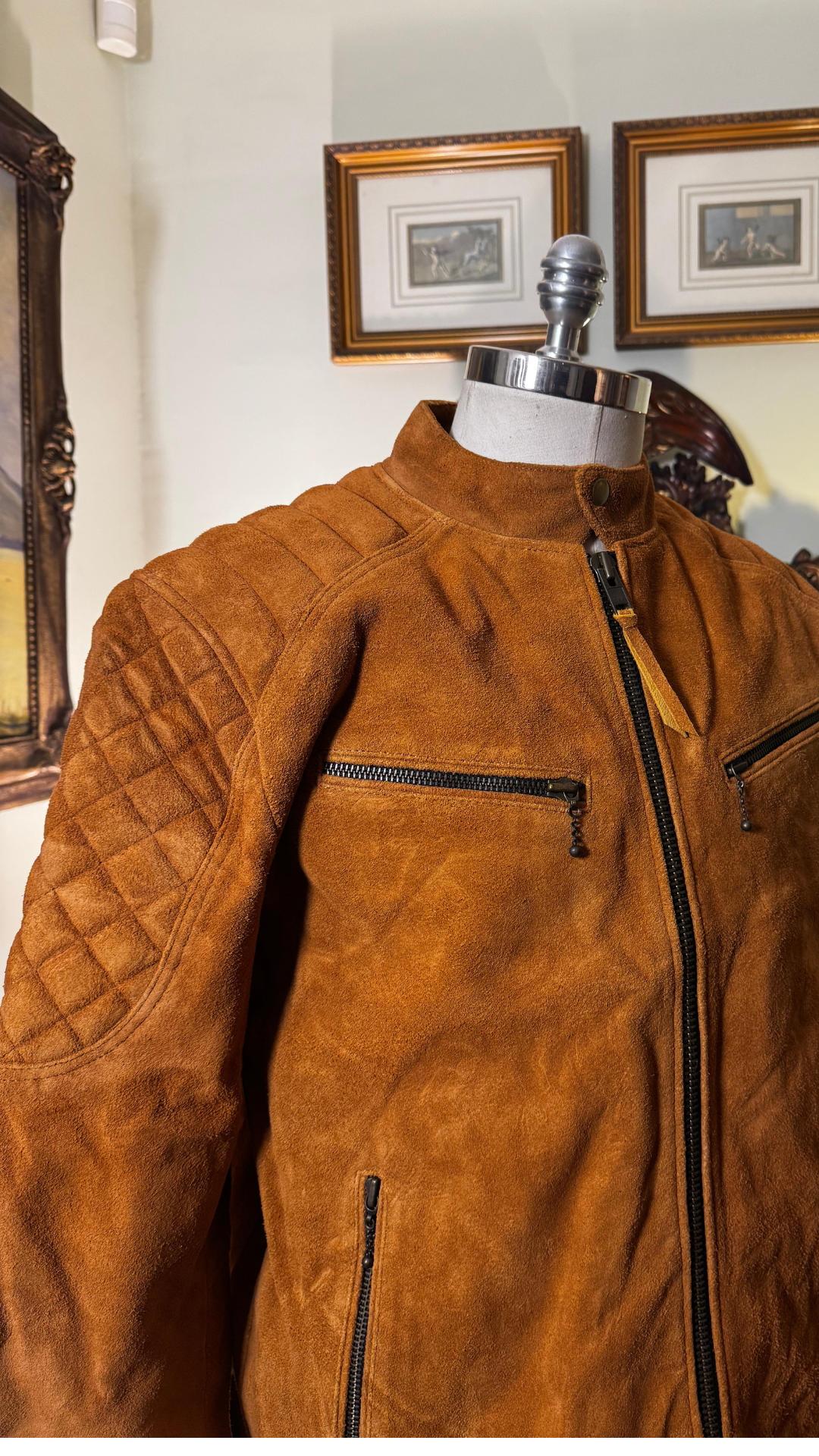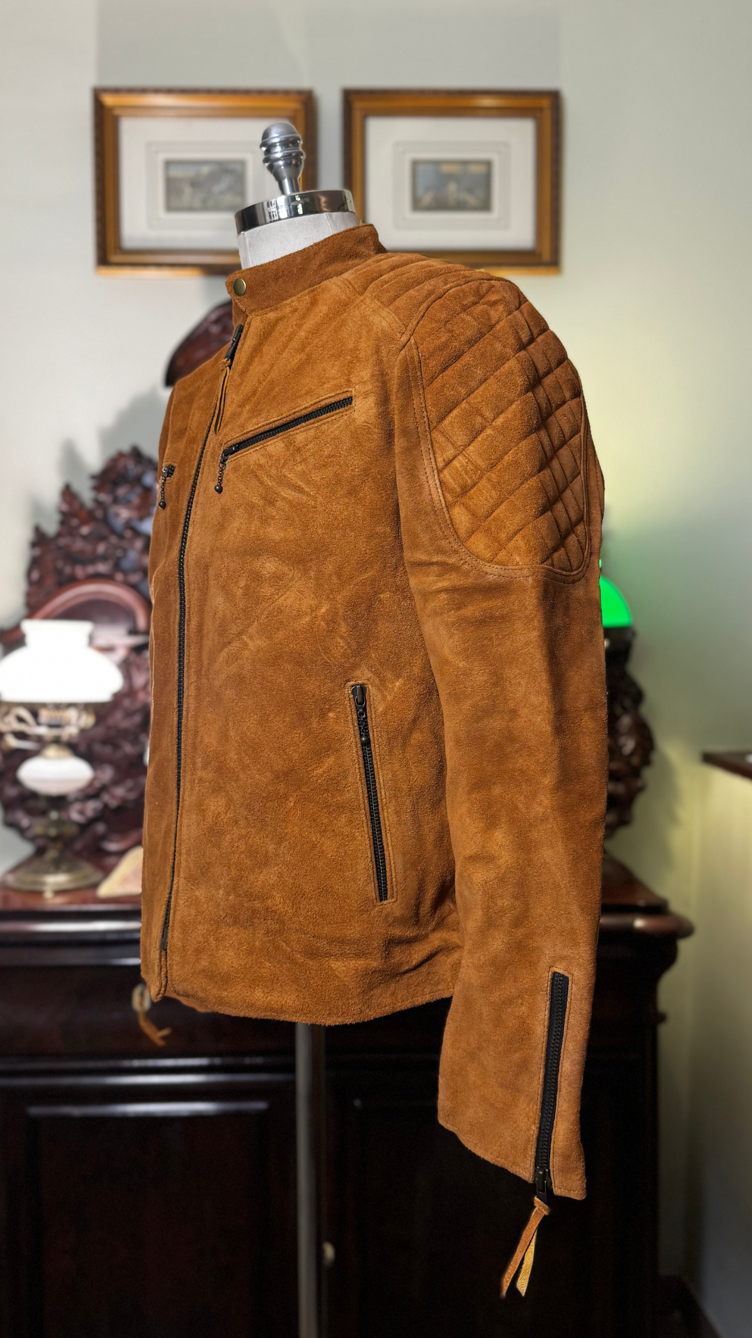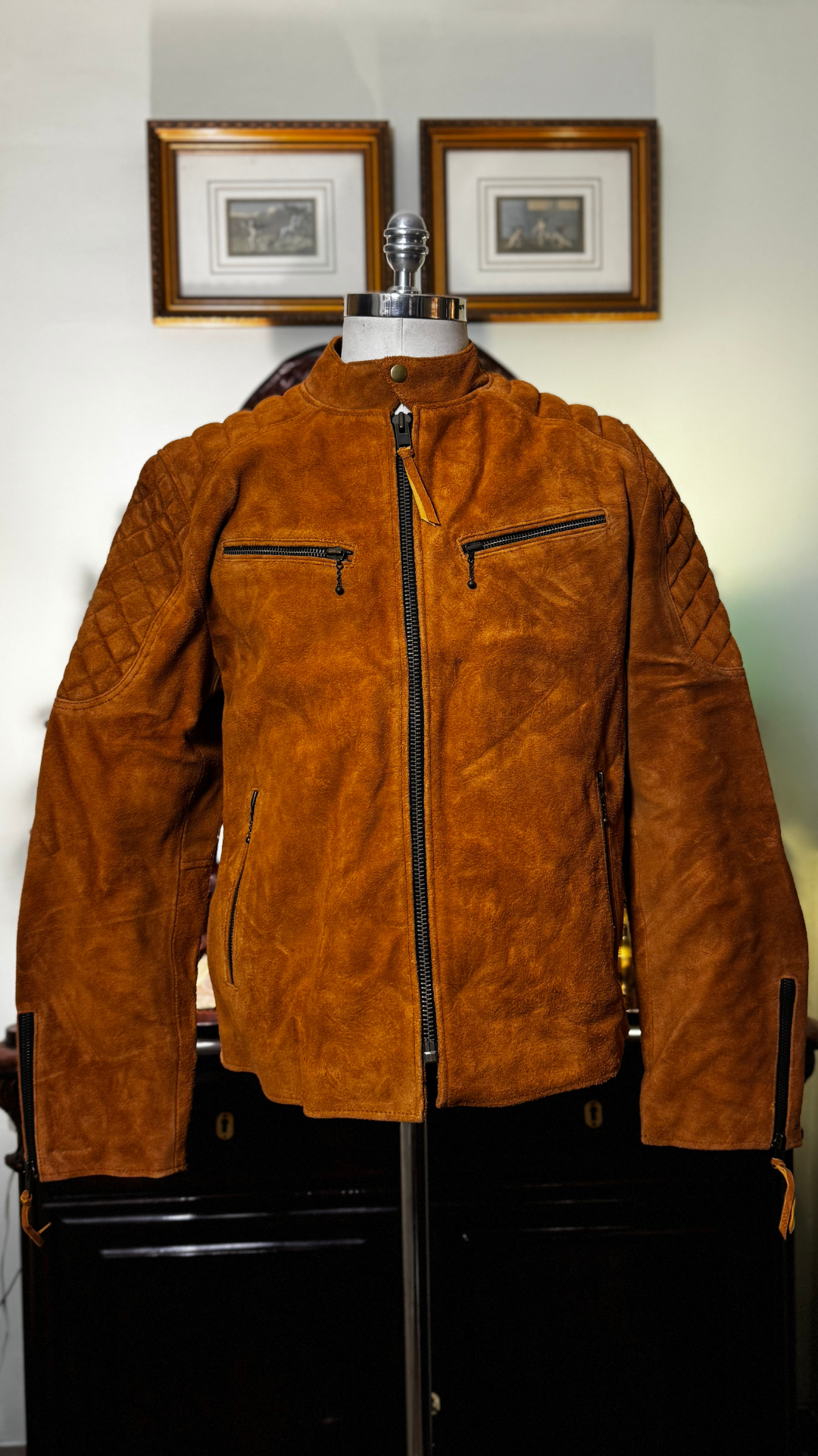 Inspirada en la emoción, la velocidad y la resistencia de la cultura clásica de las carreras, esta chaqueta rinde homenaje a una era dorada del motor con un diseño atemporal y carácter distintivo. Confeccionada en nuestro suede rugoso de primera calidad, curtido con técnicas artesanales para resaltar su textura única, ofrece una combinación perfecta de durabilidad y estilo. Su tono arena aporta una elegancia sutil que resalta tanto en carretera como en la ciudad, convirtiéndola en una prenda esencial para quienes valoran la autenticidad, la calidad y la herencia del espíritu racing